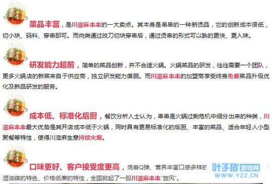 加我吧:川滋麻串串作为标志性的创新串串香, 川滋麻串串 又一次带火了串串市场,以摧枯拉朽之势风靡全国,被推上串串神坛, 川滋麻 成功从“客流分散、品牌混乱”行业乱象脱颖而出,在消费者经过一轮尝鲜后,最终为市场及客户认可。