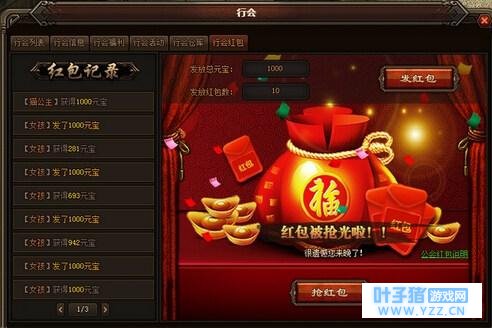 红包也被称为利是,元代《俗谚考》亦提及“为了吉兆,要向主家讨个利市”的说法,由此可见,发红包与讨红包的习俗由来已久!在49you《原始传奇》 里,所有的行会成员均可参与发红包与抢红包,红包发放的总元宝最低要求1000元宝,最高10W元宝,红包发放数量1个~50个。在行会的红包界面上可以 看到总元宝和发放红包数的输入框,旁边有发红包按钮。最低1000起的超壕红包,再不来抢就走宝啦!