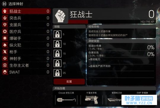 然后就是职业系统,游戏里目前一共10个职业,近战远程支援爆破都有,职业有等级,每5级可以在两个天赋点中选择一个,最高25级。 亲儿子的狂战,高防御,高回血,近战伤害高,任何类型的怪都游刃有余,除了怕被怪围住 救死扶伤的医疗,团队核心,一个团队能走多远都是看医疗的发挥 火力强劲的支援,输出直接暴力,但因为职业枪械射程较短,射速较慢,很考验每一发子弹的准确性 FFF团的纵火,大规模AOE伤害+超强控制能力,不过对于大型怪物伤害就相当的弱势了。 还有突击,爆破,枪手,神射,生存,特警(SWAT)等职业就不过多剧透了,欢迎大家在游戏中自行体验