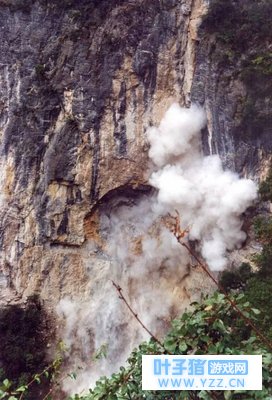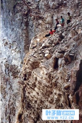 摄影/余昌国 但下庄人并不畏惧,他们挑了几个年青力强的劳力,腰上系一根长绳,徒手爬上悬崖,再由上面的人拉着悬空钻炮眼。安装上炸药,然后躲在一边找个掩护,开始点导火线。