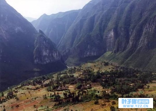 绝壁另一头的世外桃源 从坑口朝下望,坑底约一千亩的农田只有一巴掌大,九十六户人家散落其间,行人如蚁。下庄人娶媳妇,要绳捆索绑,才敢背背抬抬迎进庄。