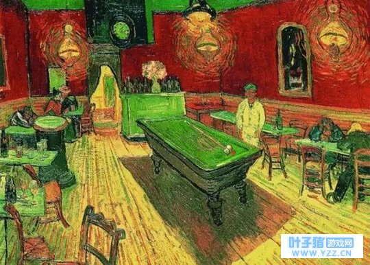 梵高《向日葵》 这两个月中,他们同吃同住,可生活并没有想象中那么和谐。 梵高的亢奋与激情让高更无法接受;高更的安静与幻想让梵高无法容忍。高更多次在睡梦中看到梵高莫名的起来,走到高更的床边,然后又莫名的走回去,就像从未发生,这让高更一度恐慌。 梵高的《夜间咖啡屋》在用色上对比极为强烈,似乎精神达到了极致的亢奋,这是 他艺术达到巅峰的开始,也是他生命走到尽头的暗示。