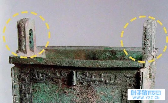 国博中的后母戊鼎。今天国家博物馆已经修复了鼎耳,被砸掉的是重新粘上去的,另一个挖掘时就已遗失的是仿了补上去的。 我们再来细细的看一下这个后母戊鼎。 鼎耳的侧面,是很多头尾相接的小鱼,这是青铜器上常见的鱼纹。