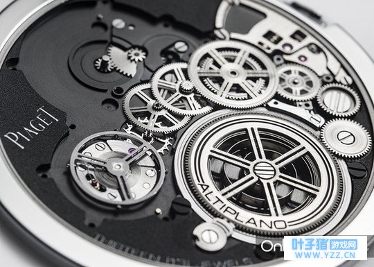 9点钟位置,于配置了滚珠轴承机构的框架上,直接安置了结构经重新设计的调速机构。取消摆轮桥板,传统结构中调速机构被直接安装于因加百录(incabloc)避震器之上。摆轮轴、滚珠轴承机构内圈及轴承形成无可分割的一体。在这样的结构之下,摆轮及游丝固定于套筒并加以倒置,意即摆轮固定在摆轮游丝上方,然而后者通常固定于游丝套筒之上。删除的游丝长度调节器可藉由可调式摆轮游丝桩得到补偿。这一系列改进能够在确保精准度及等时性的前提下,显著降低调速机构的厚度。 6点钟位置,创新设计的发条盒亦搭载了特殊独特构造。它免去了发条盒外壳与发条盒盖,安置滚珠轴承的发条直接与框架结合,由滚珠轴承机构于外部引导,将动力经由滚珠轴承机构内圈传输。大钢轮及发条轴柄轴成为一体并置于发条盒上方。此项技术结构亦确保了这一机芯部件配置紧凑相邻,以成全整体的轻薄度,同时也确保了机芯的自主性,使Altiplano Ultimate Concept腕表拥有44小时的动力储存。 3点钟位置的控制系统亦经重新审思。它的设计在于提供功能选择模块,其中可包括时间设定、为腕表上链或与任何功能相关的机械系统产生联动——比如日期或月相调校——诸如此类的装置在日后能完美兼容地被添加到这一机械结构中。这是一项重大的创新,开启了超薄制表添加复杂功能的全新视野。更特别的是,这项装置由控制杆、装配于控制杆上的小齿轮构成,配备一个选择杠杆以与齿轮(以及控制杆)与齿轮(众多齿轮系之间)之间形成动态联系。这些齿轮各自与特定机构相关联,因此能够选择性地控制相应的功能。为了达到这个目的,通常的滑动齿轮改以蜗状螺丝的样式存在,因而可以如旋转轴般直接驱动与其位于同一平面上的齿轮或小齿轮(而非以重叠的形式)。选择杠杆与一组介轮和小齿轮相连,这项配置使其得以自由选择与任意齿轮系(及其所各自代表的功能)啮合。使用这一手段来实现与轮系的选择性联动,大幅削减了部件数量,也因此令装置内结构的排列更为密集。