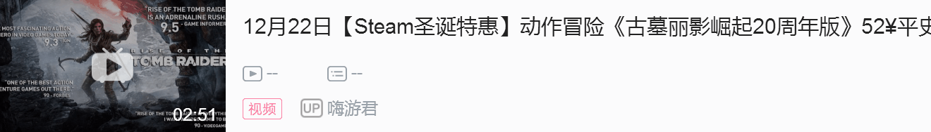 《古墓丽影崛起20周年版(Rise of the Tomb Raider: 20 Year Celebration)》 开放世界动作冒险游戏 历史最低价格52¥