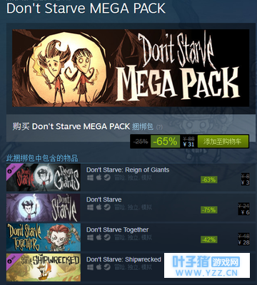 推荐直接购买大包《Don't Starve MEGA PACK》 历史最低价格31¥