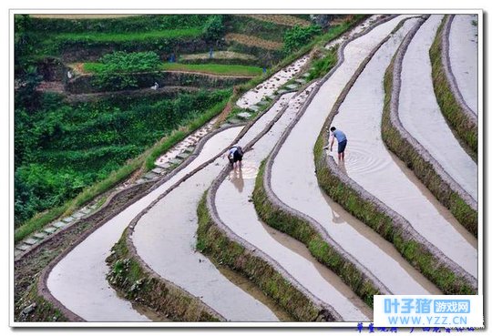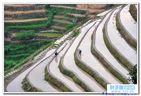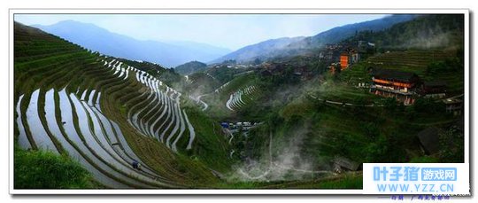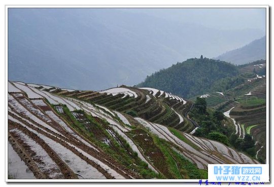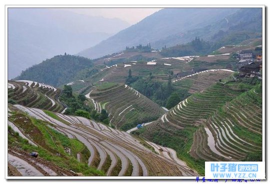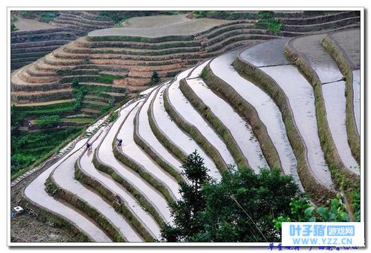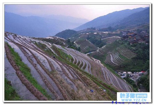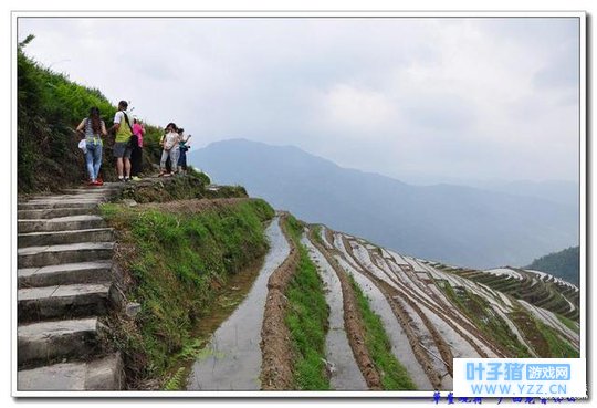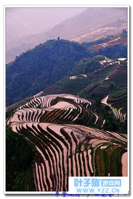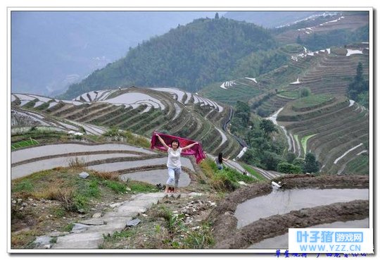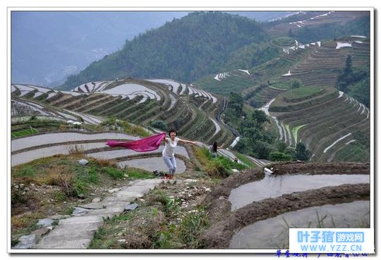 当人们在旅途中为了壮美的山峰与江河啧啧赞叹时,也许忽略了一种原始的大美——稻田。中国的稻作文化可以追溯到石器时代,生生不息的原始农耕,造就了环环相扣的文明积淀,让华夏子孙得以延续繁衍,而植根于高山、平原、荒漠或沼泽的稻田则无处不在,耕种者用最原始的工具在地球的无数褶皱上,绘制了一幅幅令人惊叹的生命图腾。 龙脊梯田始建于元朝,完工于清朝,距今已有600多年历史。龙脊的开山造田的祖先们当初没有想到,他们用血汗和生命开出来的梯田,竟变成了如此妩媚潇洒的曲线世界。一条条田垅如链似带,从山脚堆绕到山顶,其线条行云流水,潇洒流畅,其规模磅礴壮观,气势恢弘。 龙脊梯田处在崇山峻岭深处,是一个规模宏大的梯田群,龙脊因山脉如龙而得名。“山是龙的脊,田是云中梯”龙胜当地人常常这样说。 早晨的一场淅沥的小雨洗涮了昨日的尘埃,梯田倒影着缭绕在山腰的晨雾,与黄、绿的大自然之色相互交错着,像是无声的乐章在流淌......行走在梯田之间,似乎还能感受到先人用勤劳的双手,因地制宜、依山而建成了这一条条或平行或交叉的梯田,虽然历尽沧桑,却造就了她独一无二的优美曲线。站在山顶望去,层层叠叠的梯田令人陶醉、令人沉醉,那一条条曲线将龙脊山装点成一条活灵活现的巨龙,千百年来守候在此,驻守着这里的一切。 到达平安寨山脚下,顺着青石板铺就的小路,向山上走去,抬眼望去,“玉带千环束翠峦,青梯万级搭青天”。梯田一层紧扣一层,从龙脊山脚盘旋而上,一直伸到白云缭绕的山头,仿佛一条条迤逦先进的长龙,其行云流水的线条,鬼斧神工的造型,令人惊叹不已。 曾有诗人这样赞美梯田:平安二景势峥嵘,五虎奔游绕翠峰,九岭山峦龙戏水,七星伴月图画中。山间田头,青石路上,布落着许多杆栏式木楼,房屋高低错落,层次分明,是典型的壮族民居,不时有头裹白巾的壮族寨民穿梭其中。漫步于此,闻着一阵阵飘香的竹筒饭的香味,身心不由自主地神游其中。 五月中后,龙脊梯田的水已经灌得差不多了,这时也是一年中最美的观赏时期。这次活动,我们一行人,经过近20个小时的苦迫行车,历尽了各种腰椎痛、颈椎痛、膝腿酸痛、前列腺痛的折磨后,见识了它的宏伟与壮美,也算不枉此行了,直接上片片,与各位看官分享 (各位队员有相片的请在后面跟上了)