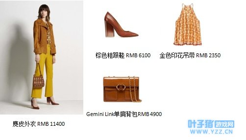 时尚策划人–李晖 时尚策划人李晖身穿姜黄色麂皮外衣搭配金色背心,脚踩棕色粗跟鞋,身背Gemini Link单肩背包,展现帅性的同时也不失成熟的女性魅力。