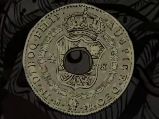 在游戏的载入画面上,那枚被亚哈船长打孔的达布隆金币就在屏幕右下角旋转。主角以实玛利登场时携带的唯一物品,正是这枚金币。主角佩戴这枚金币有声望加成,船员伙伴佩戴之则有士气加成。