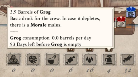 弗农仪表堂堂,经常身披大氅,这种衣物是用一种叫做“grogram”的厚实斜纹布织成,弗农大佬因此被水兵们亲切地称为“old grog”(中文:老皮??),他发明的饮品就用他的绰号命名成“grog”,意思是“掺水的烈酒”。 游戏里,烈酒grog是船上每日消耗的补给品之一,也是最贵的一种补给品,船员伙伴们要靠它来维持高昂的士气。