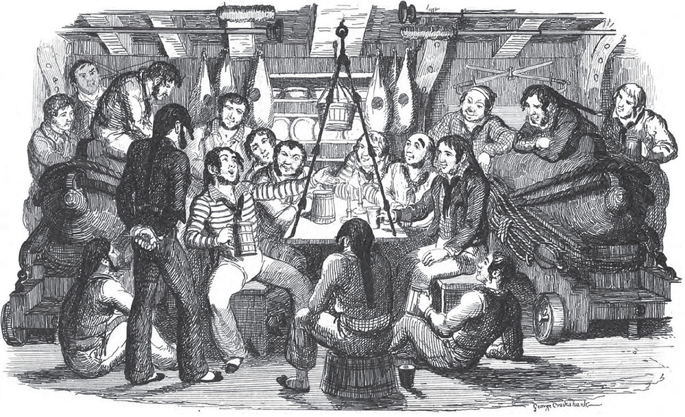 朗姆酒的英文单词Rum,语出英格兰南部的德文郡方言“Rumbullion”,有“吵闹、兴奋”的意思。一群喝得“吵闹而兴奋”的醉鬼,显然是无法胜任船上的日常工作的。1740年,爱德华·弗农(Edward Vernon)中将发布了第349号船长令,规定水兵们每天的半品脱朗姆酒配额必须兑上两品脱的水。为了增加口感,弗农把糖和酸橙汁加入稀释后的朗姆酒里,这正是最初的鸡尾酒,并意外地降低了水兵们患上坏血病机会,潜移默化地提升了皇家海军的战斗力。
