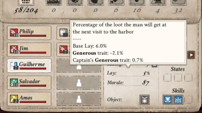 在酒馆遴选船员伙伴时,优先选择有良性天赋者,而非选择等级高者。 风力帆船的最后荣光