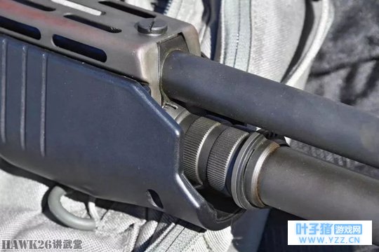 弗兰基SPAS 12是半自动霰弹枪,所以管形弹仓在护木根部有滚花纹路,便于拆卸保养活塞装置。