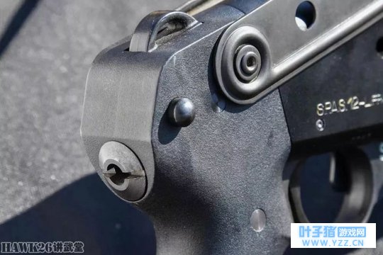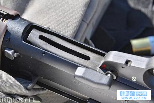 另一侧是阻隔按钮的释放按钮,如果不需要继续发射特种弹,则按下这个按钮,就可继续从弹仓中补充霰弹射击。
