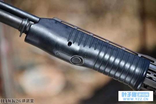 SPAS 12标志性的大护木,底部的大按钮用于选择半自动和泵动模式。
