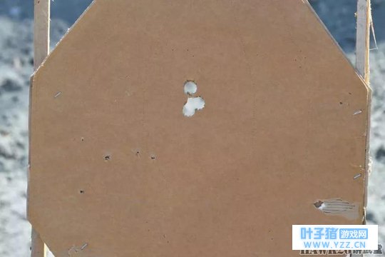 在半自动模式下,一秒钟SPAS 12可以发射五发子弹,理论射速达到了300发/分钟。这是25米距离上三发独头弹的射击结果,非常准。