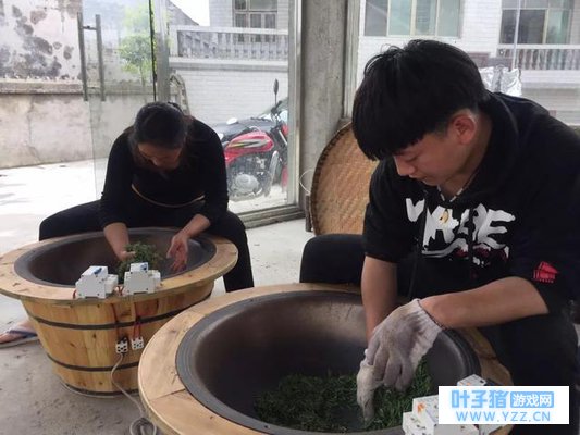 “连续作战不困吗?” “实在困了就轮流打两个小时的瞌睡。” 对茶农来说,一年之中最忙的就这几天,最开心的也是这几天。 茶青在高温锅里慢慢变蔫,只见雷毅鹏关掉开关,将锅里的茶青捧到簸箕里,出锅揉搓。“这是我的独门绝技,‘三炒三揉’,出锅揉,让茶汁充分浸出,这样炒出的茶叶才会‘三黄三绿’,没有怪味。”雷毅鹏说,整个过程全凭经验和感觉,一是用眼观察颜色的变化,二是用鼻子闻香气,三是凭手感判断火候,力道技巧只可意会不可言传。