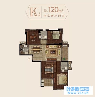 120㎡四房两厅两卫,南北通透,可享三代同堂。客厅带大面宽观景阳台,引江风徐徐入室,打造从容礼宾会客空间。