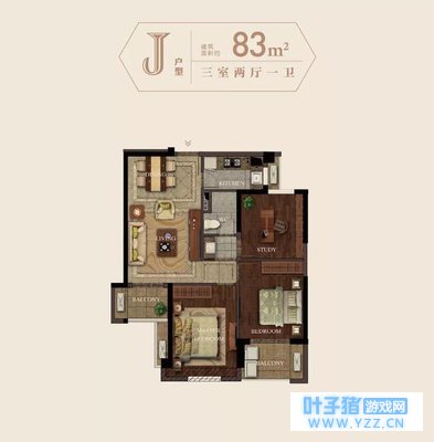 83㎡奢适三房,干湿分区,功能明确,生活舒适惬意。室室敞亮采光,美景尽揽,实用高效。