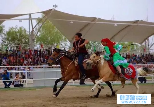 哈萨克人热爱骏马,热爱歌唱,在马背上与歌声里孕育着自己的文明。哈萨克人将猫头鹰视为勇敢、坚定、一往无前的象征,并可带来吉祥,同时也视猫头鹰的羽毛为珍品。草原上,奔驰的赛马头上同样也扎着几支猫头鹰羽毛。据说是马主人希望他的马,像猫头鹰一样勇猛、速度飞快。 传统民俗表演《姑娘追》