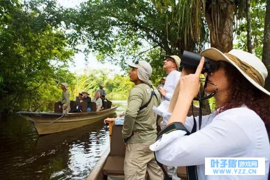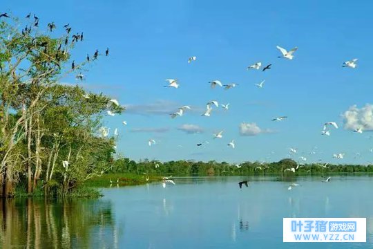 动作缓慢的树懒正从一根树枝换到另外一根,偶尔落单的鳄鱼相当警觉,再向深处航行,就会惊起一大群水鸟。