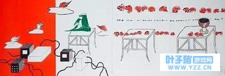 不,没有什么思绪。所谓系列是指对个展或类似情形下,描绘成组作品的一种机会。我在头脑完全空白的情况下,才能够进行创作。问题是如何去处理一直围绕着你的所有那些幻像,那都是一些很小的日常琐碎。你总是围绕着自己周围的事,根据你周围力所能及的事进行创作。对我来说,最重要的事是我的居处环境,我围绕这些事情进行创作,它成为现实的物象,有点像鸡笼,一种战场,某种意义上说是一种经济的活动。你不能想着去讨论、谈论艺术,或欣赏它、研究它。你怎么看一个拳击手,从哪里去欣赏一个拳击手?你必须看他的动作,必须看他如何着手应对周围的普普通通的细小事情,在一个小的空间内,他是如何运动的,这些动作随之有规则地向外扩展。但实际上,在他周围仍有小毛病,这是一个令人惊讶好奇的问题。你看美女是如何运动的,像一片云,那是她留下的印象,也正是她所表现的。