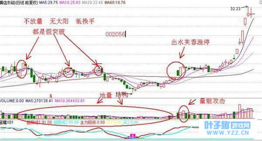 002056,横店东磁,2010年7月27日,放量攻击涨停,股价芙蓉出水,当日换手率是5。71%,底部出现这种换手股价是强势的,连续拉升的概率非常大,短短三五天股价涨了百分之四十多。注意前面有三次也出现了芙蓉出水形态,但当日“芙蓉”都没放量,都是地量,换手很低,这说明主力还处在滚动建仓阶段。 实战范例三: