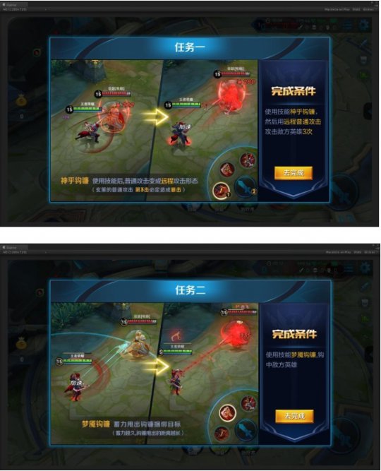 如图所示,在教学关卡中会通过任务教会玩家们一些连招和小技巧,让玩家们在新英雄推出后能够第一时间熟练的使用。究竟百里玄策在游戏中将有怎样的表现呢?让我们拭目以待吧!