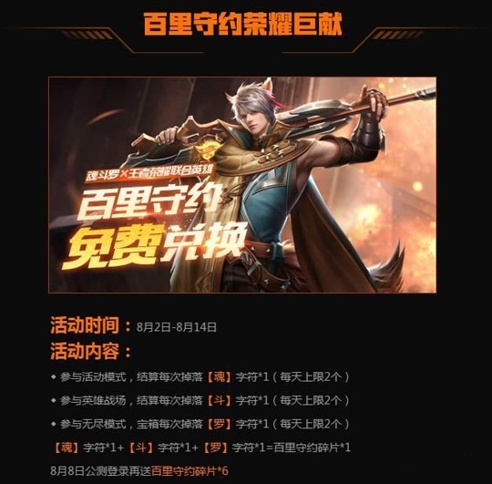 如上图,需要先下载腾讯的魂斗罗手游,然后在活动模式、英雄战场、无尽模式中分别获得“魂”“斗”“罗”三个字符碎片,然后用字符碎片来兑换百里守约碎片。
