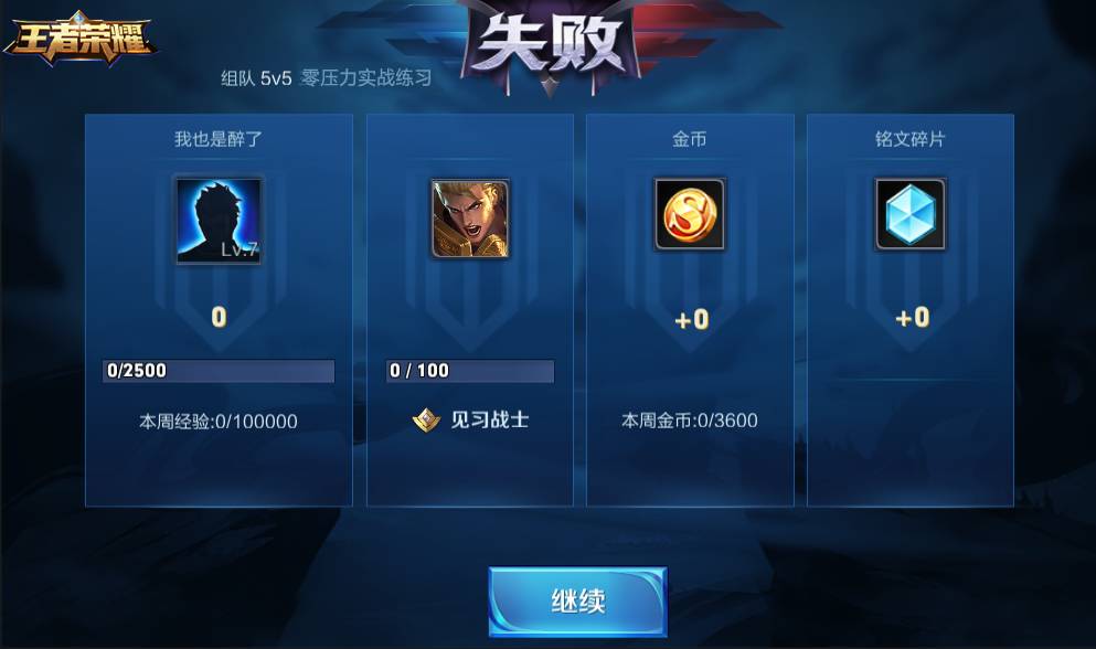 对局结束页面,本模式同样可以获取英雄熟练度,可获得和人机对战对等价值的金币和铭文碎片~