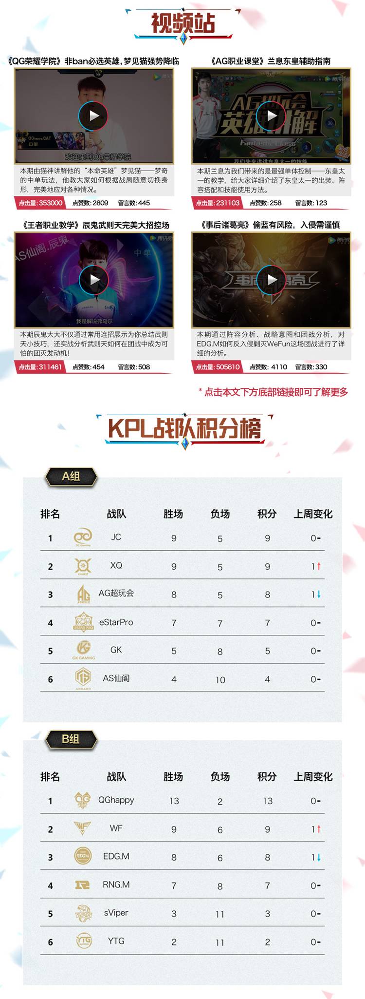 ▍召唤师你想知道你所喜欢的战队目前的积分排名吗?现在就跟着妲己宝宝来回顾一下上周比赛的精彩战况吧!!