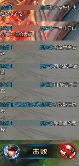 此处应该有掌声并且飞机火箭什么的都给老亚瑟走一波,老亚瑟都感觉自己可以出道做艺人了。但是说到峡谷最知名的MC,相信你我心中也有数了,开口脑浆糊奖的获奖者就是......子龙!掌声有请!