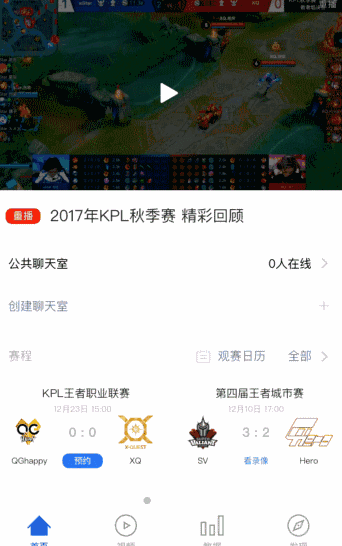 接下来出门右拐,我们再来看看 【王者互动】 板块~在 【赛事直播】 中,召唤师们可以随时随地围观比赛,有关于赛事的资讯都可以在这里找到哦,喜欢KPL的召唤师记住咯!
