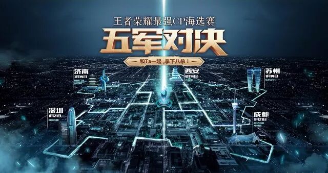 在此次五城连战中,比赛采用最新的 五军对决玩法 。不同于以往5v5的对战模式,五军对决采用 2v2v2v2v2新玩法 。二人成队组成最强CP,让合作更加简单便捷。五队混战引发更加激烈的角逐,也呼唤着更高的作战水平。
