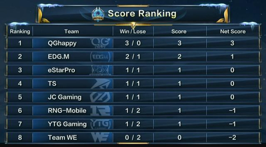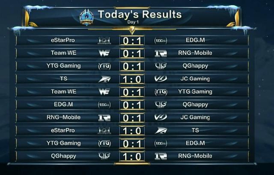 上图是第一日的全部战绩图,可以看到除了WE之外都是至少胜过1局的,QG三连胜已经抢得先机,如果没什么意外的话,他们杀入第2轮是比较容易的了,就是RNGM只有1胜2负的成绩让人大跌眼镜,之后就要好好发挥才行了。