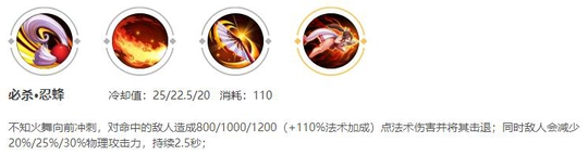 解析:不知火舞朝前冲刺对命中敌人造成伤害并击退,同时减少敌人的物攻。