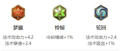 梦魇和轮回提供的法伤和法穿能够让火舞在前期就能够打出很高的伤害,法术吸血能增强火舞的续航能力。怜悯的冷却减缩可以减少火舞的技能CD时间