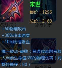 曹操的被动叠加攻速是根据曹操本来就有的攻击速度比例来的,末世可以提升曹操百分之三十的攻击速度,还有一些物理攻击,末世的被动是回血,末世装备功能复合曹操。末世的被动在平A附带最大生命值的攻击,曹操正好又是比较肉的,所以不仅加强了曹操的攻击速度还加强了曹操的平A攻击力,还有曹操的吸血。