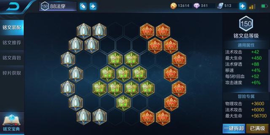 铭文方面,TS.破碎为上官婉儿搭配的铭文为10梦魇+10心眼+10调和。非常常规的法师88法穿铭文,携带10个调和能够增强上官婉儿在前期的容错率,不至于被对面英雄消耗太多血量快速迎来四级强势期。