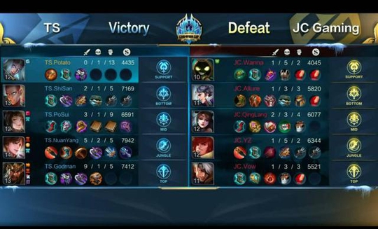在12月28日进行的冬季冠军杯中国赛区预选赛的比赛中,TS对战JC的比赛新英雄上官婉儿迎来了职业联赛的首轮登场,并且拿下了团队最高的30.9%的输出。在这局比赛中,TS.破碎使用的上官婉儿利用大招入场,很好地压制了貂蝉和裴擒虎的生存空间,虽然最后的mvp没有给到TS.破碎的上官婉儿,但是在这局比赛中,上官婉儿起到的作用也不容忽视。