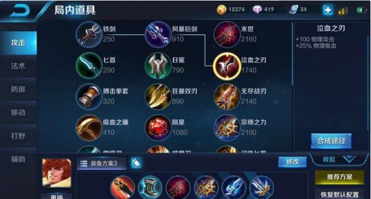 最后两件:名刀/制裁/暗影战斧/破军/碎星锤(这一点可以根据局势出装,如果你是前期抓爆对方了,你可以直接出暗影、破军或者破甲等高爆发输出装。