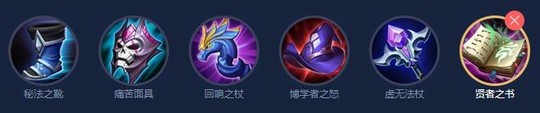 六神装:秘法之靴+痛苦面具+回响之杖+博学者之怒+虚无法杖+贤者之书