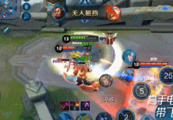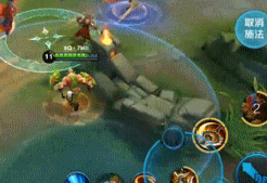 4、二技能重点来了,斧子转两圈,两段伤害,物理加成120%,伤害可观,残血时伤害惊人,但是,二技能有两个机制或者说bug!二技能释放期间无法开启大招]新手咬金一半以上都在这一机制上跪了。