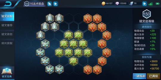 铭文推荐:蓝色5调和5狩猎+绿色鹰眼+红色异变