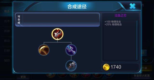 中期我们要选择闪电匕首和泣血之刃。也有一些朋友会说,你第四件装备才出泣血那前期续航肯定是不足的,其实这一点很好解决,只要我们在开局的时候先出一个吸血之镰就可以了,前期就能满足狄仁杰的续航需求,而第四件装备再合成泣血之刃,不会有一点影响。