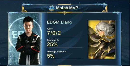 22分钟,RNGM想出来拼死一搏,虽然梦奇的大招直接抢下了黑暗暴君,但队伍脱节严重,在撤退过程中被EDGM牛魔一个大招击中3人,最终是直接被打团灭,EDGM趁机点爆水晶,拿下这局,浪浪成功获得MVP。