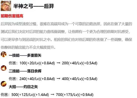 解析 :直接提升前期伤害,很简单很暴力。这几个版本削弱战士提升射手,就是为了让射手回归线上,这次提升的面板伤害足以让后裔在线上和常规战士对线,但是还是要注意敌方的控制型辅助、坦克和刺客的gank,毕竟提升的是伤害,没有提升身板。