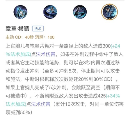 当然,要知道如何打断她的五连,就要先了解她的技能,做重知己知彼。上官碗儿大招想刷五连只能通过野怪、小兵、英雄以及技能。如果想远距离塔下强杀,没有兵线的情况下一般是先扔一个二技能,大招冲两下,再扔一个二技能,这个路线一般是直线,所以可以预判她到来的位置放控制技能。