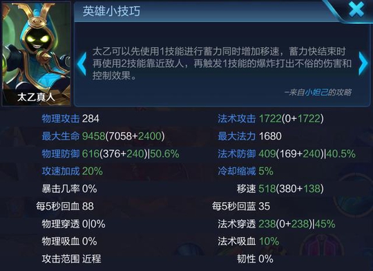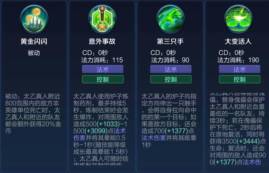 以下这个面板可以看到太乙的技能介绍,在看看它的数值!