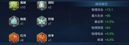 铭文推荐:一套比较全面的铭文,带了暴击有时一个平A可能会出奇迹,兼顾输出与生存续航能力。
